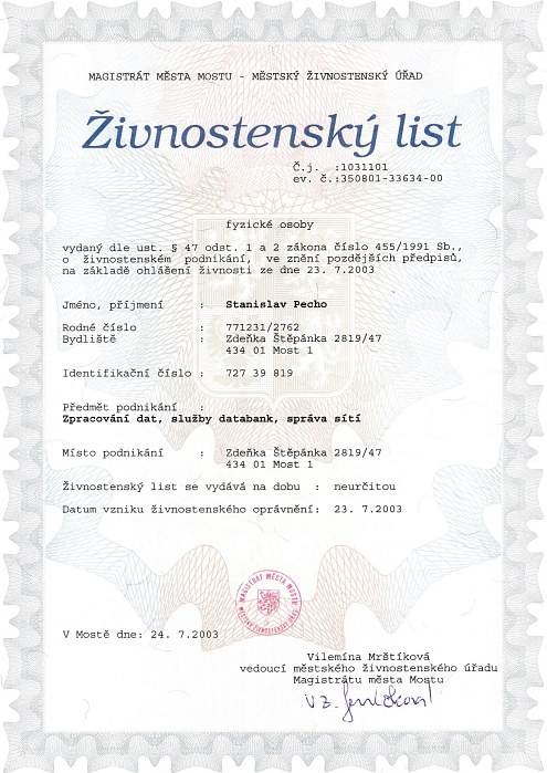 Oprávnění k podnikání: ŽL1 | ŽL2